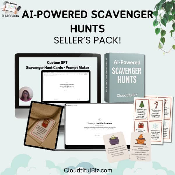 My friend Mabel from Cloudtiful Biz created this Scavenger Hunt Seller's Pack. Advanced scavenger hunts for teens and adults have huge demand with far less competition, because they take more creativity and time to make.